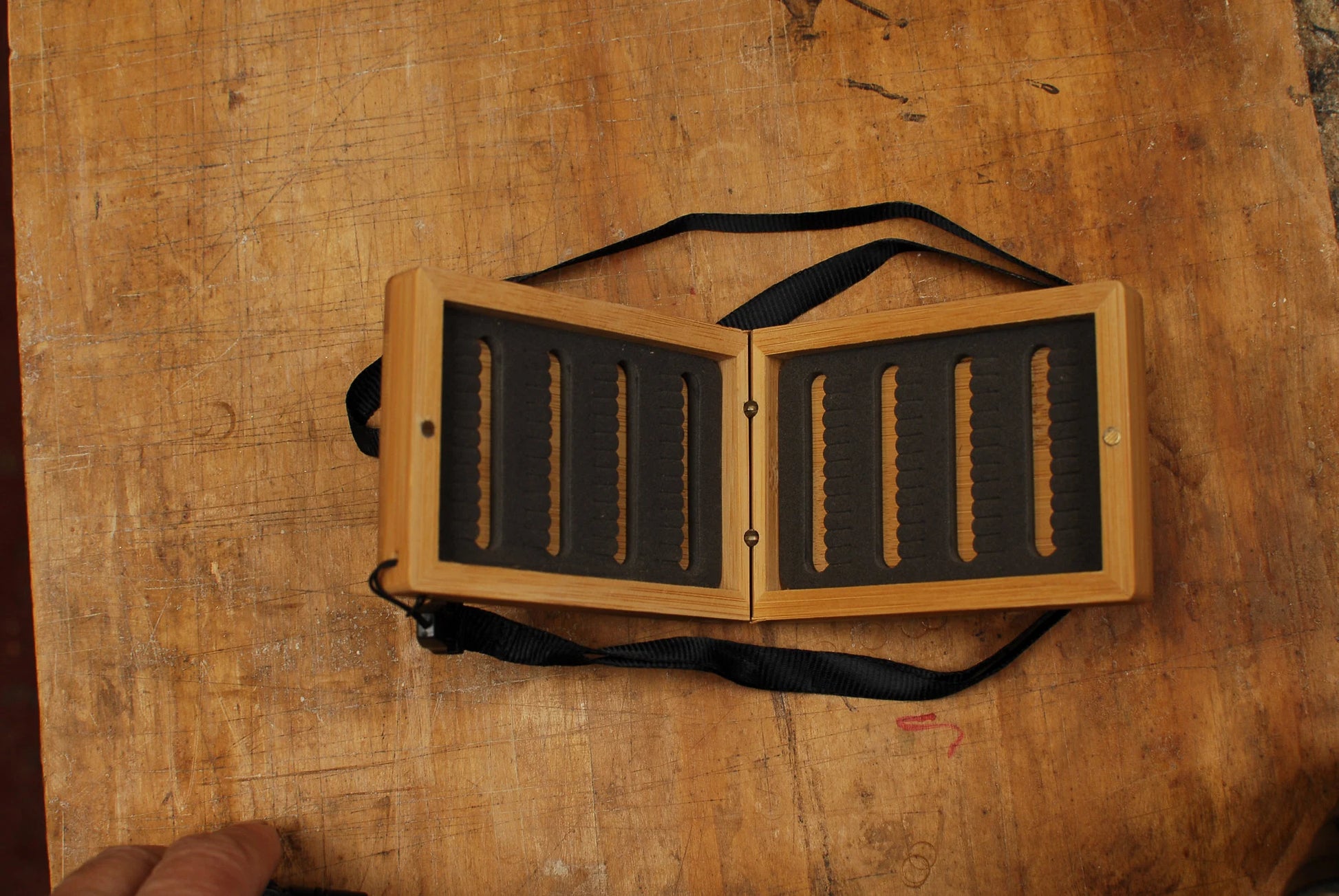 A small fly fishing box that can be personalized with two letters.
